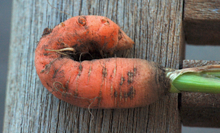 No turnips here shaped exactly like a thingy, but we have pulled out some extraordinarily shaped carrots. They look like they changed their mind half way and started growing in the opposite direction.
